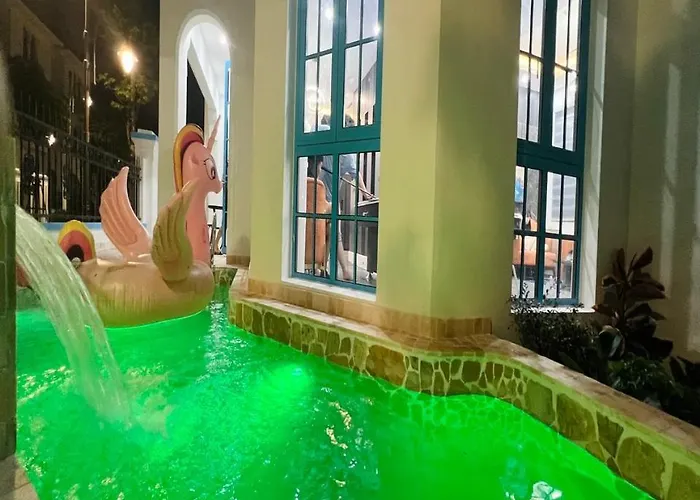 Если вы хотите остановиться в районе Bai Chay, то 10-комнатная Chuoi Villa 5 Ngu Sun Ferria - Trung Tam Bai Chay - Be Boi Rieng - Sat Bien Ha Long — это неплохой вариант, расположенный в радиусе 2 км от Дракона Парк Ха Лонг. На территории также есть терраса. С нее открывается вид на сад.